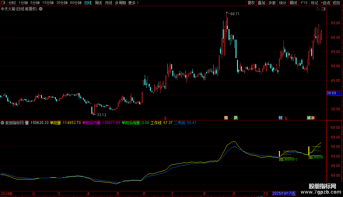 “老舍单阳不破主图”用 5% 长阳+倍量锁定机构启动点,随后 10 日最低价不破长阳低点即画红线预警,并给出 1-10 日倒计时。叠加 14 日工作线与 25 日二号线,多头区间红线越靠近工作线,越为黄金低吸位。缩量 75% 以下、小线体同时出现,预示洗盘结束,二次起爆概率>80%。