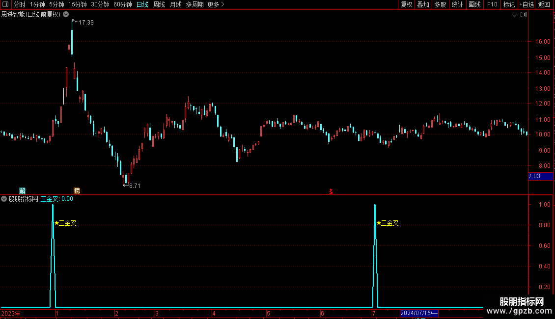 DRAWTEXT(三金叉,0.82,' ★三金叉'),COLOR00FFFF;