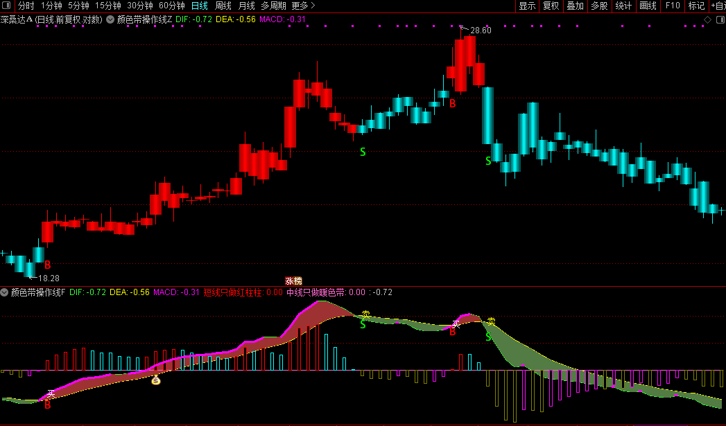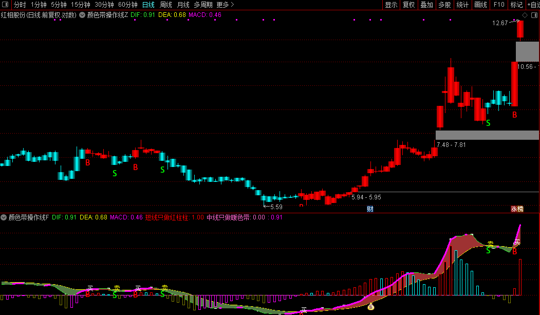 通达信【颜色带操作线】主副/选股指标可视化彩色信号直观辅助决策源码