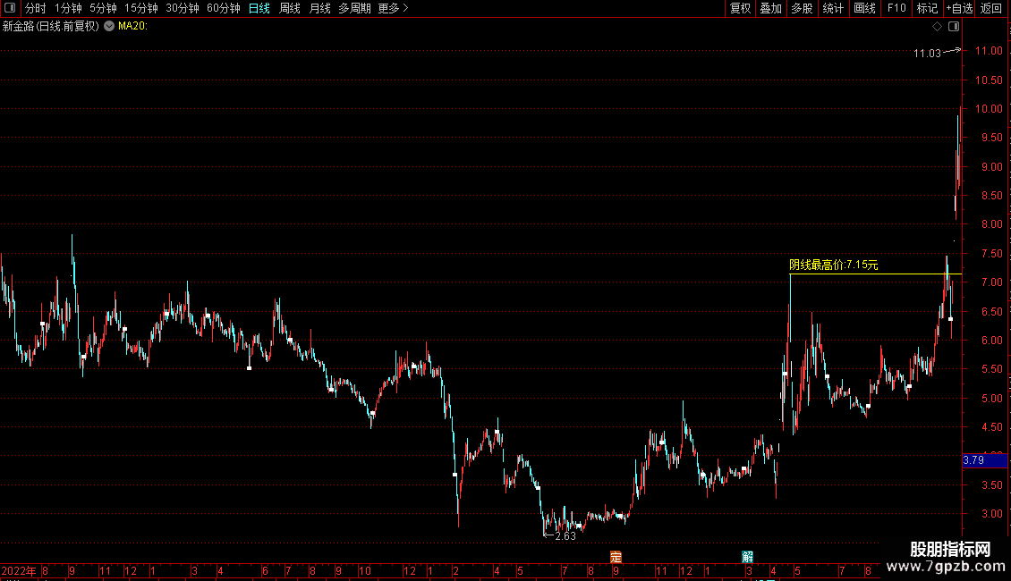 1、指标原理解析:股票涨停后,庄家常打压股价洗盘。大阴线会吓退不坚定投资者,庄家则低位吸筹。当股价突破该阴线最高价,即为分批建仓信号。