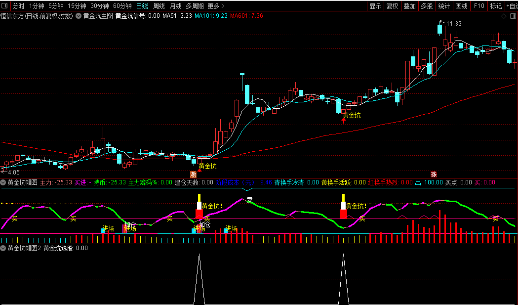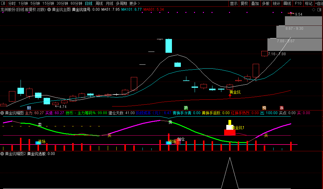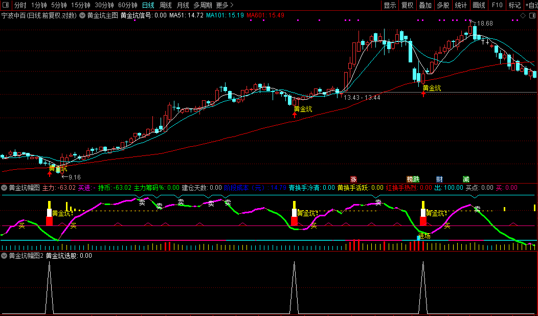 通达信【黄金坑】主副/选股中期处于上升趋势的黄金坑买入信号源码