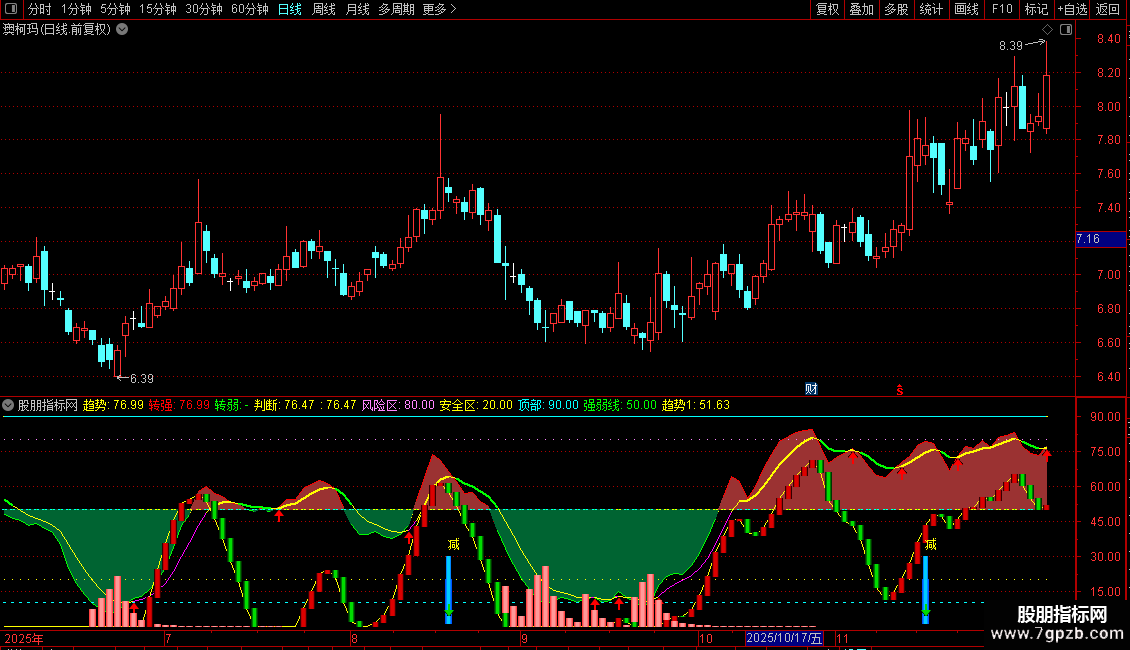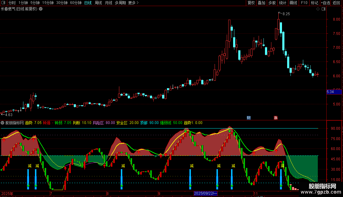 转弱:IF(趋势<50,趋势,DRAWNULL),COLORGREEN;