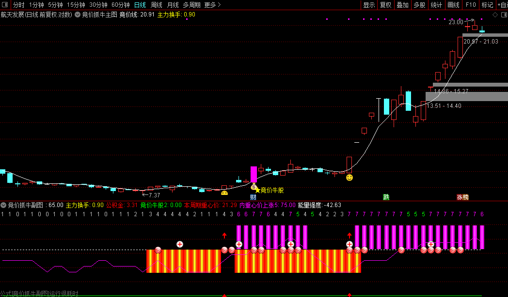 “竞价抓牛”是聚焦A股早盘竞价阶段的实战选股公式,核心融合量能异动、左峰突破、多技术指标共振逻辑,专为捕捉竞价阶段强势牛股设计。公式通过统计10周期内价格突破前高(零号信号)、量能低位异动,结合突破5/10/20/40周期峰谷压力位(过左峰),叠加MACD、KDJ、CCI、OBV等7大指标共振(XJ数值)、主力资金(庄比例)、能量强度等维度,多维度筛选具备上涨潜力的个股。