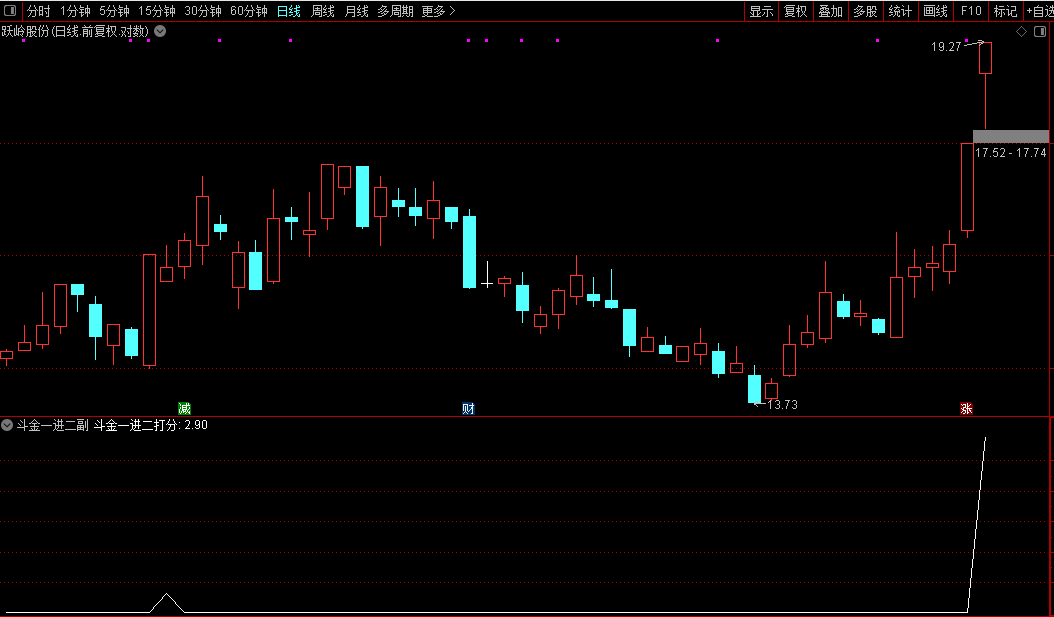 斗金一进二 公式包括1竞价指标(电脑使用)、1副和1选股指标。专为短线捕捉个股“一进二”涨停机会设计,核心围绕资金流、涨停结构、量能等关键维度构建评分体系。公式整合了资金净额、资金规模占比、涨停判定、开板识别、量能放大等多维度数据,通过量化计算输出“斗金一进二打分”,数值越高代表个股次日晋级二板的概率越大。