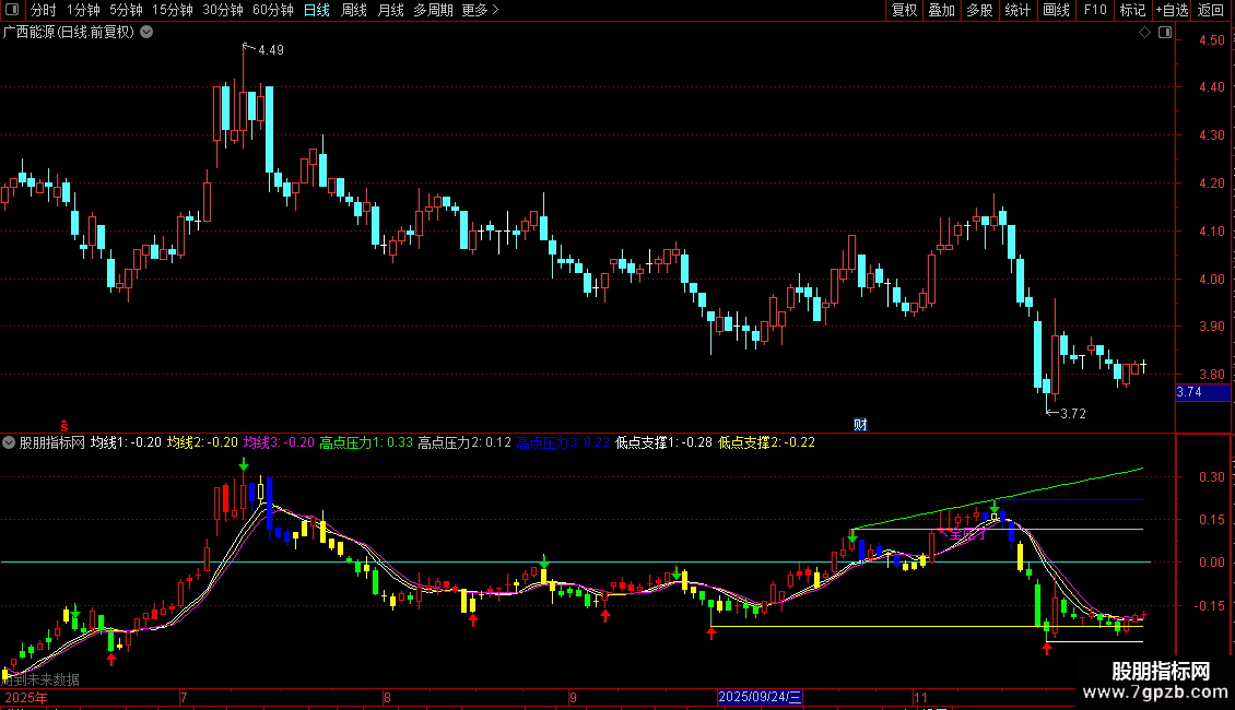 ZGEND:=CONST((高点压力1+低点支撑)/2);