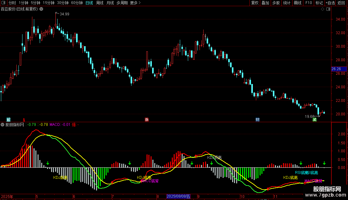 DRAWTEXT(B1>0,-0.8,'MACD底背'),COLORFF00FF;
