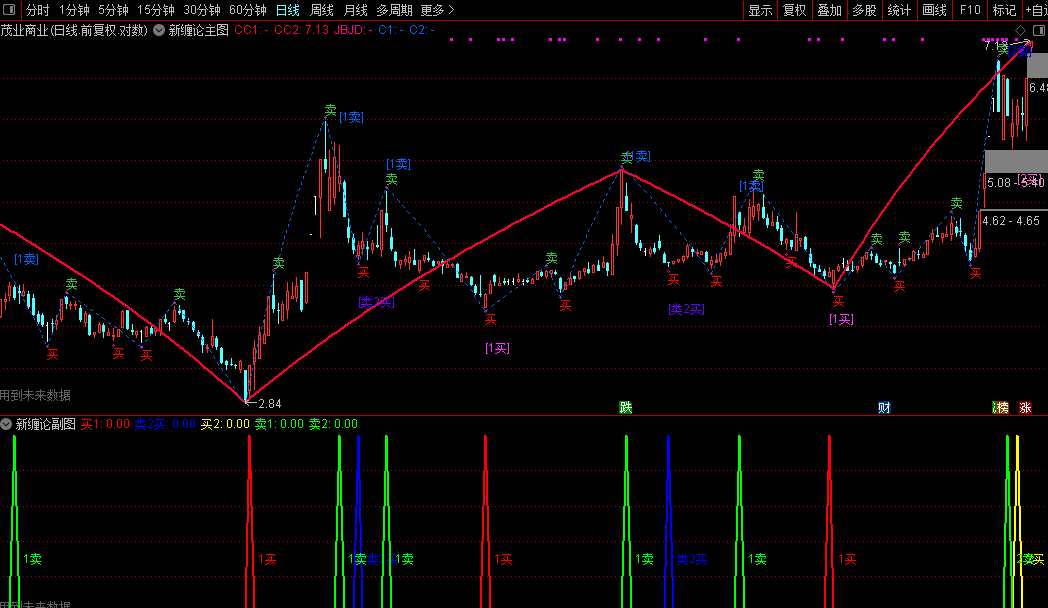 工具可在图表上自动绘制波段高低点连线及潜在中枢整理区间,直观呈现股价的支撑、压力与运行节奏。用户可直接加载至主图,依据出现的信号与图形结构,辅助进行波段交易决策。