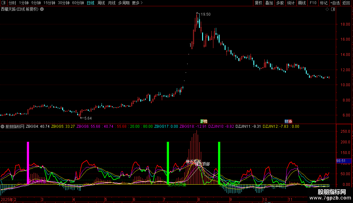 DRAWTEXT(DZJIN7=10 AND FILTER(DZJIN7=10,5),ZBGS6,'接近底部'),COLORYELLOW;