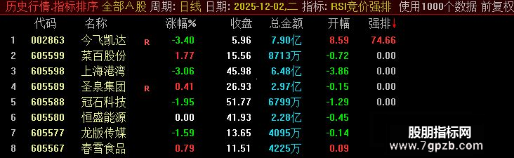 平时的竞价基本上用到了竞价换手Z跟量比,这款是用到了RSI的14日参数来*竞价涨幅排序,选出强势!