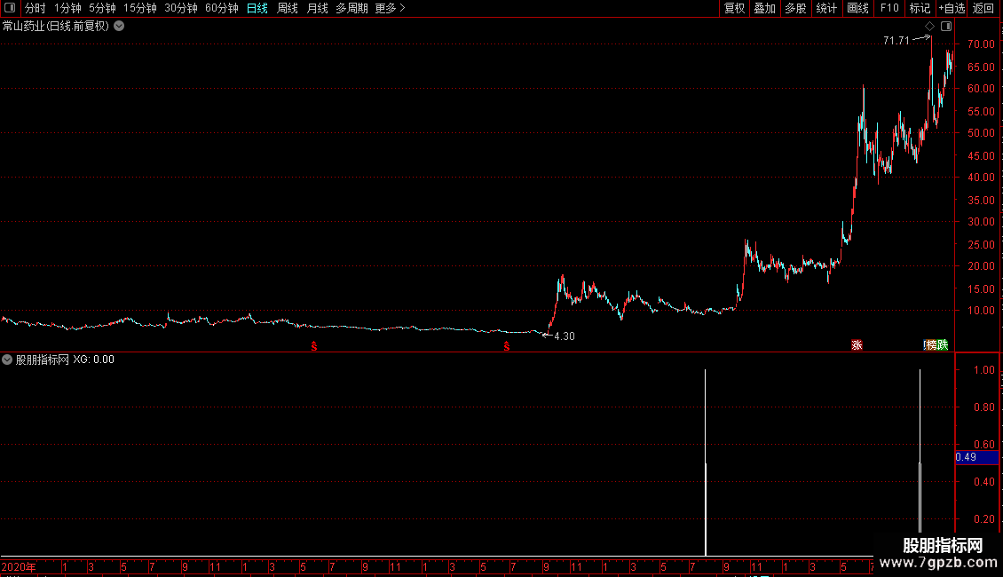ZB:=C< H AND H>=ZTPRICE(REF(C,1),X1);