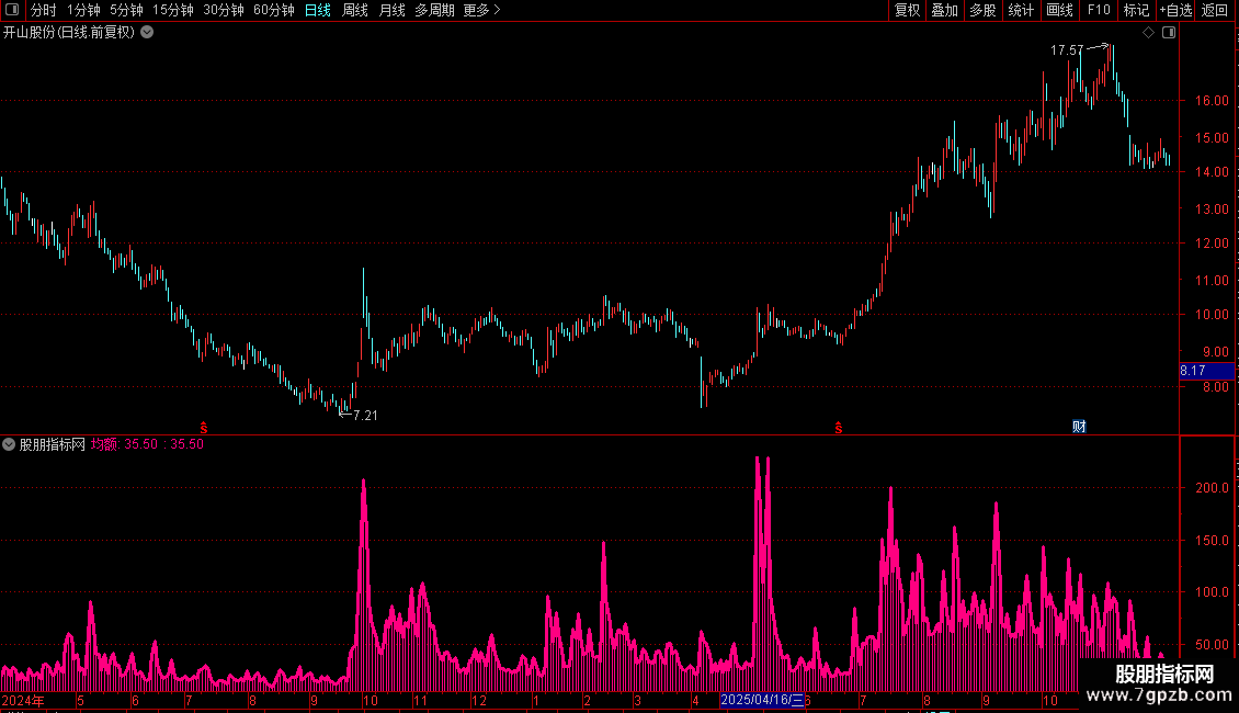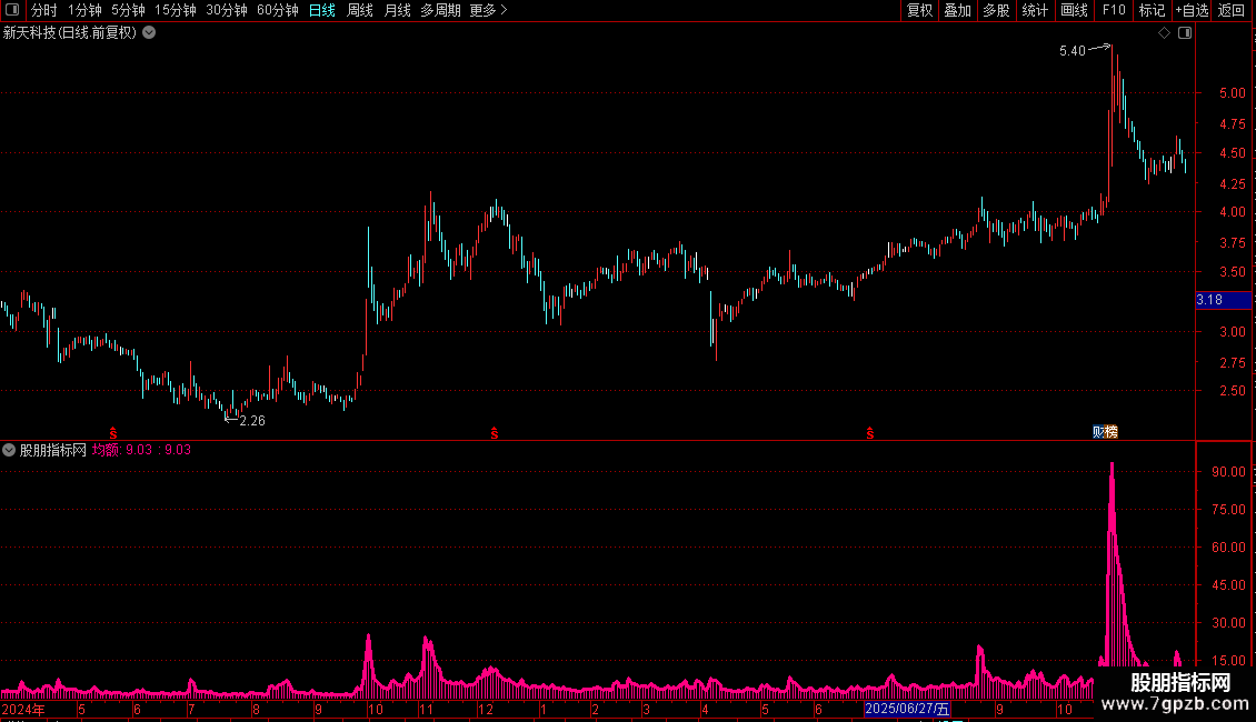 指标主要用于监控市场交易活跃度和资金动向。通过实时获取总成交笔数、内外盘比例及平均每笔成交金额,计算出“均额”——即每笔成交对应的平均资金额(以十万元为单位),并用醒目颜色绘制柱状图。当均额显著放大时,说明大单或机构资金活跃;缩小时则反映散户主导或交投清淡。操作上可结合均额变化判断主力参与程度:均额突增伴随价格上涨,可能是主力进场信号;持续低迷则宜观望。