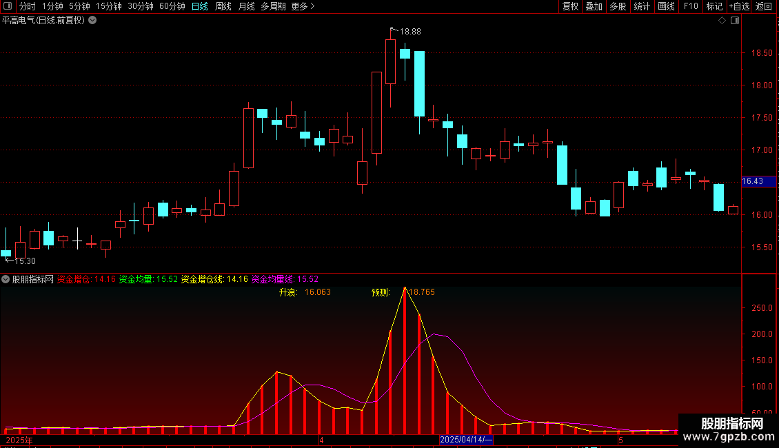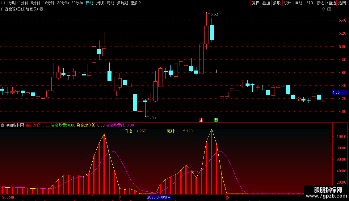 资金均量线:MA(DC,5),COLORMAGENTA;