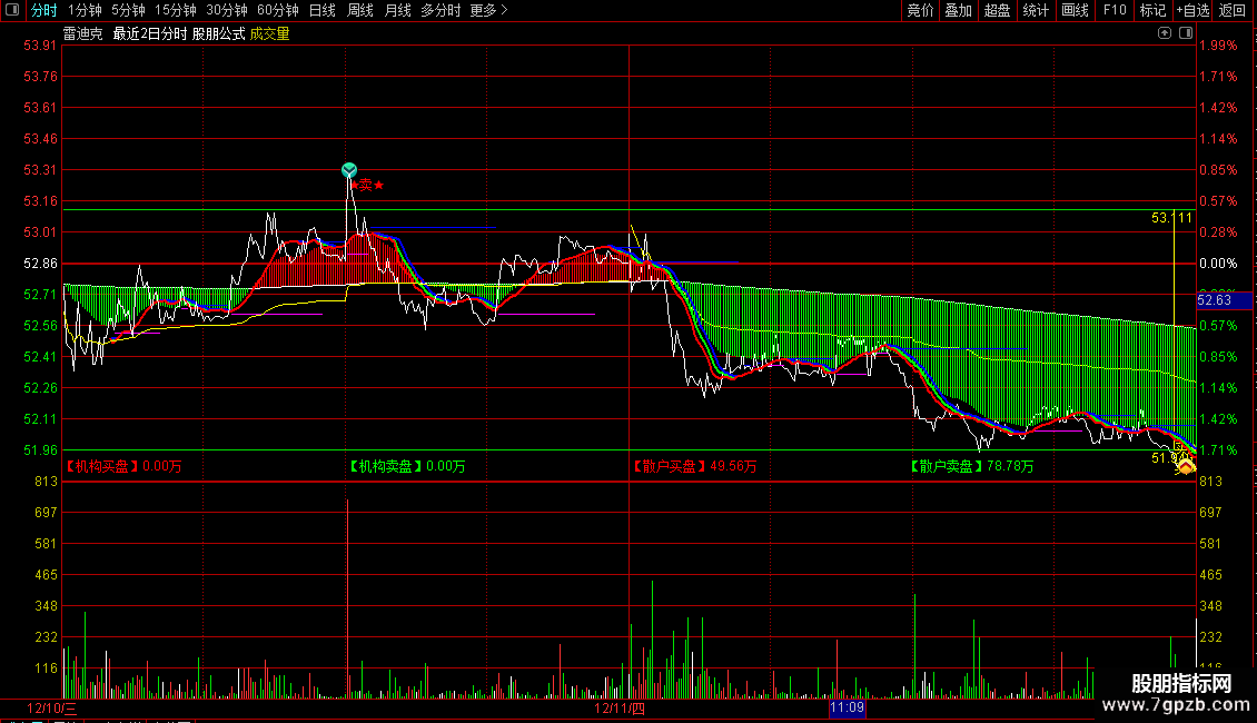 1. 为简化看盘,在分时图叠加MACD指标和分时趋势线