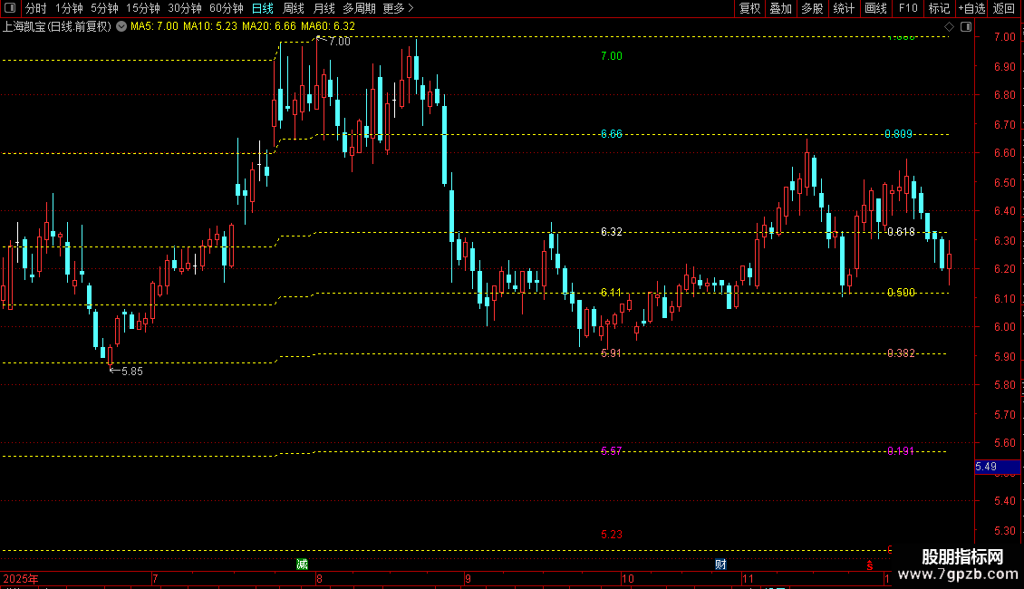 该指标的核心在于0.618这一比例,以及与之相关的其他分割点,如0.382、0.5、0.809等。这些比例来源于斐波那契数列,在金融市场分析中被认为具有较高参考价值。