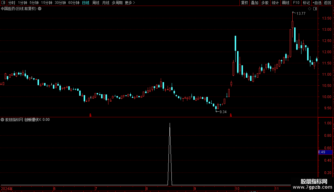VAR14:=REF(VAR11< VAR12 AND VAR13>VAR12,1) AND HIGH>VAR13 AND CLOSE< OPEN AND REF(HIGH< VAR13,1) AND LOW< VAR13;