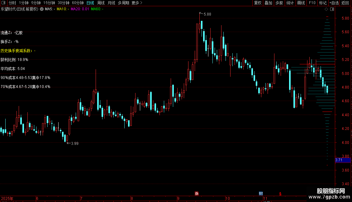 DRAWTEXT_FIX(ISLASTBAR,0,0.1,0,STRCAT(STRCAT('流通Z:',CON2STR(流通Z,2)),'亿股')),COLORWHITE;