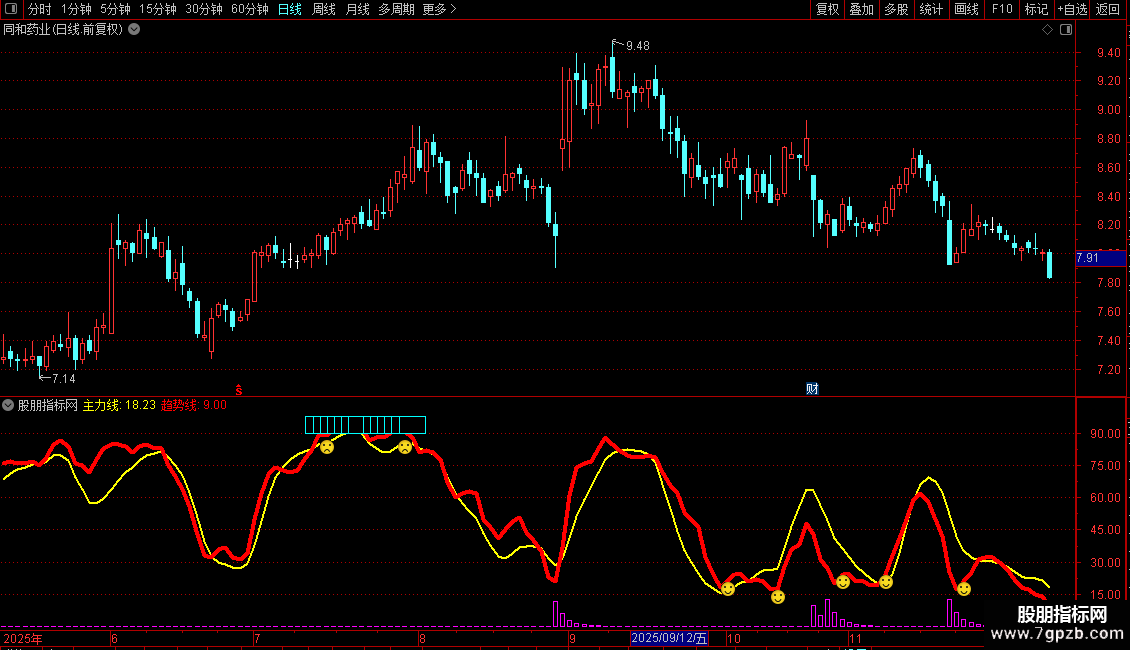 主力线:EMA(J,6),COLORYELLOW,LINETHICK2;
