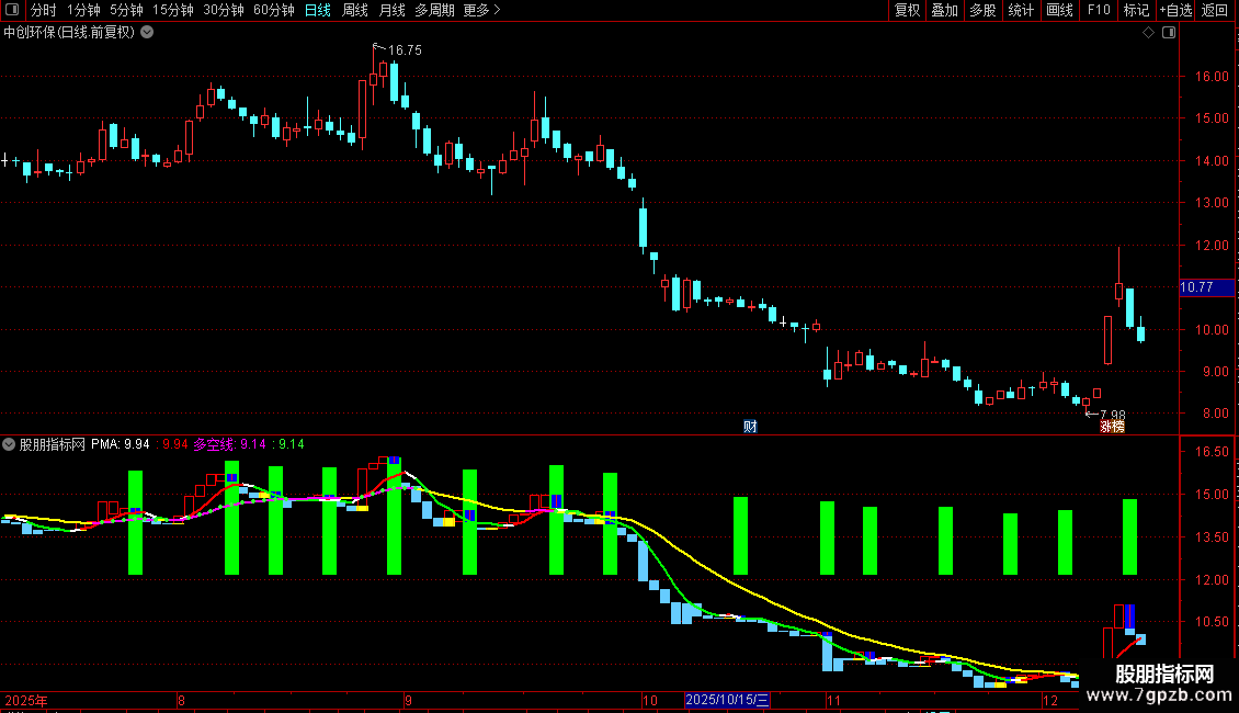 多空线:(20*X+19*REF(X,1)+18*REF(X,2)+17*REF(X,3)+16*REF(X,4)+15*REF(X,5)+14*REF(X,6)