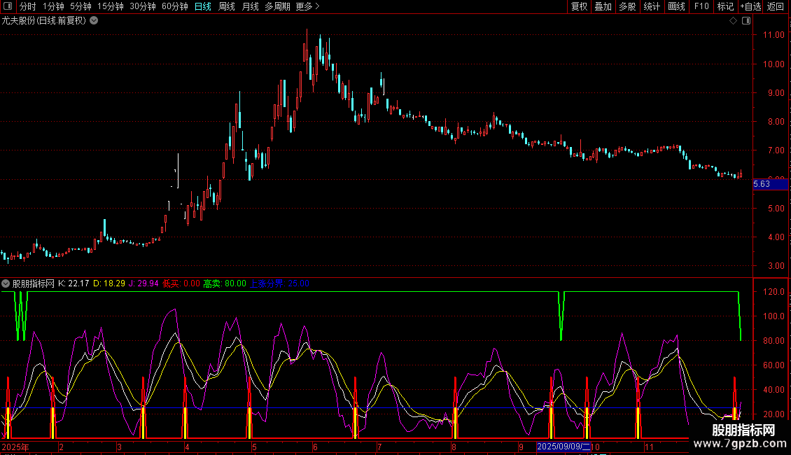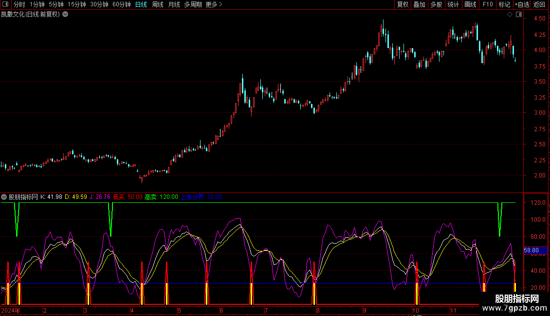 STICKLINE(低买,0,25,2,0),COLORYELLOW;{0,25指高度};
