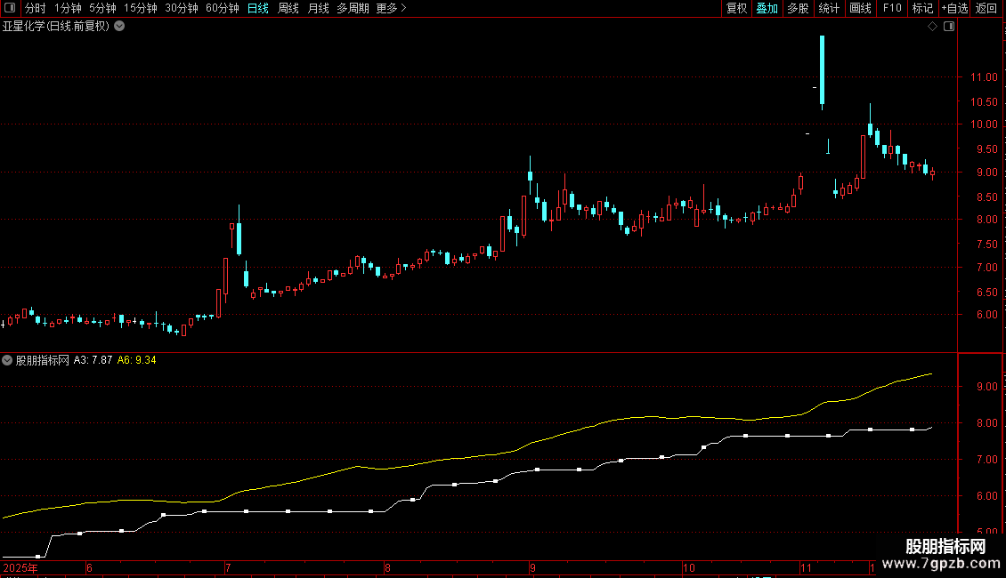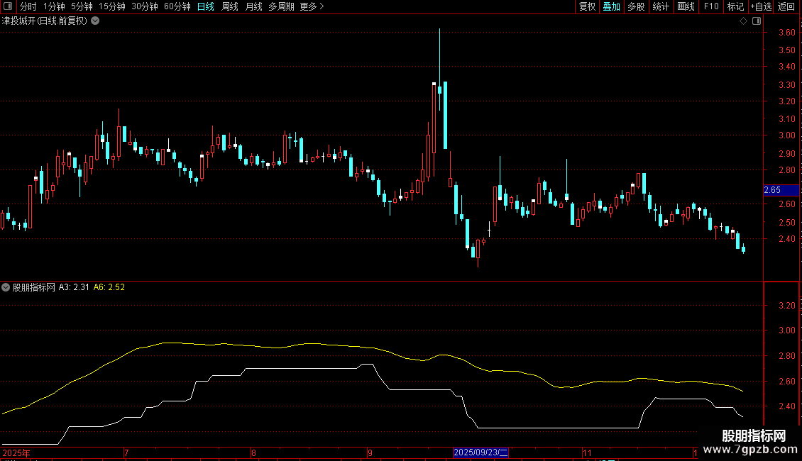中线买入股票:=CROSS(A1,A4)AND (A5-A4)>40 AND 基础;