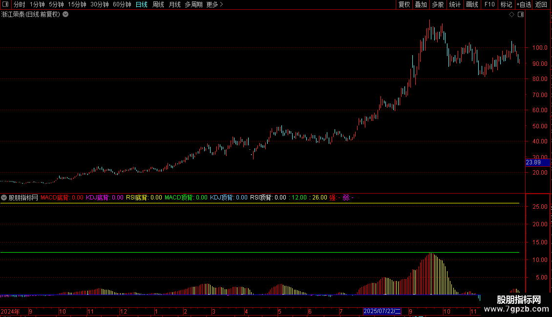 MACD顶背:IF(D1>0,0.1,0),COLOR00FF00,POINTDOT;