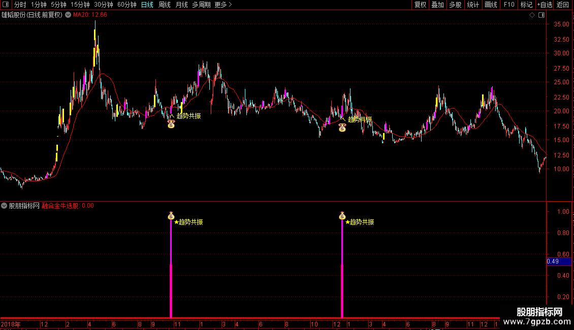 DRAWTEXT(融合金牛选股,0.9, &#39; ★趋势共振&#39;),COLORYELLOW;<br>