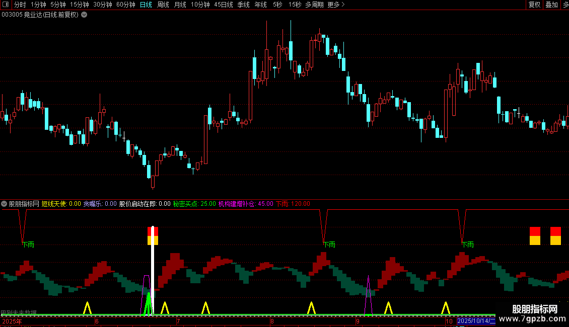 下雨:IF(头部>REF(头部,1),80,120),COLORRED;