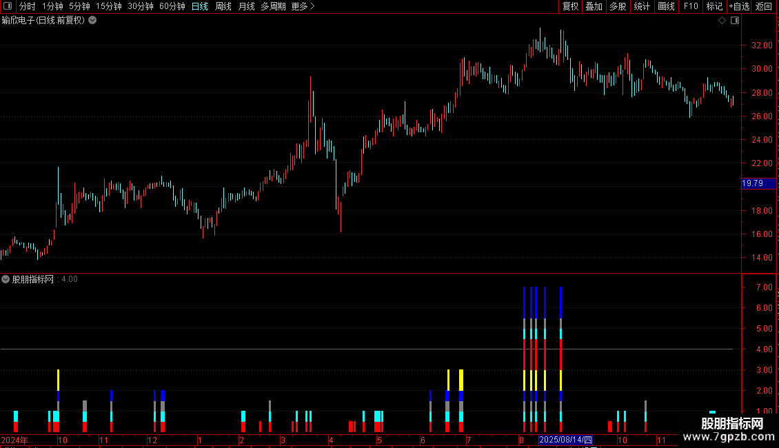 STICKLINE(VAR32,0,0.5,1,0),COLORRED;