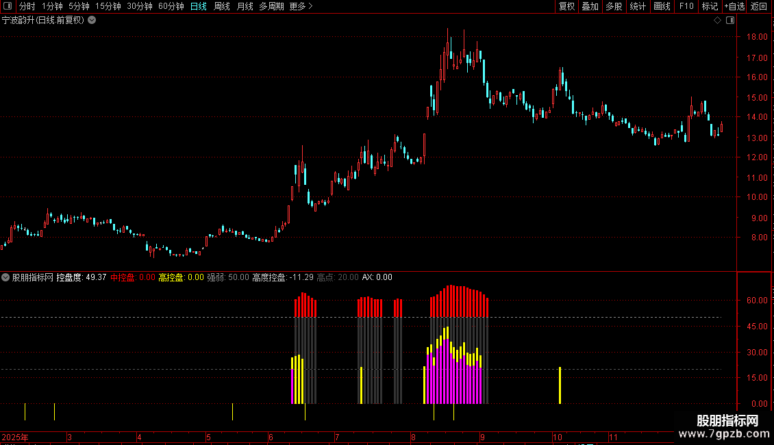 中控盘:IF(控盘度>=60,控盘度,0),COLORRED,NODRAW;