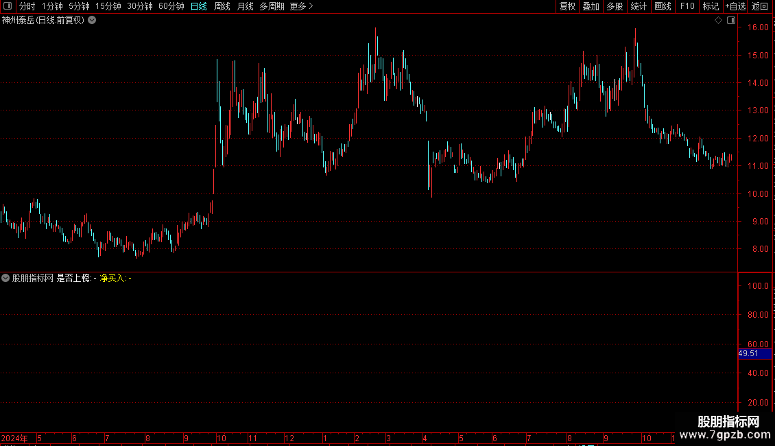 STICKLINE(是否上榜>=1 AND 净买入<0 , 1, HIGH1, 0.2, 0), COLORGREEN;