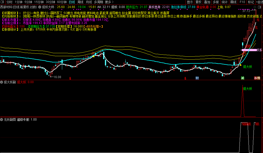 正所谓:只要是妖股必定有“捉大妖”信号 主图划线用到未来函数,但是不影响买卖信号,副图和选股没有未来函数