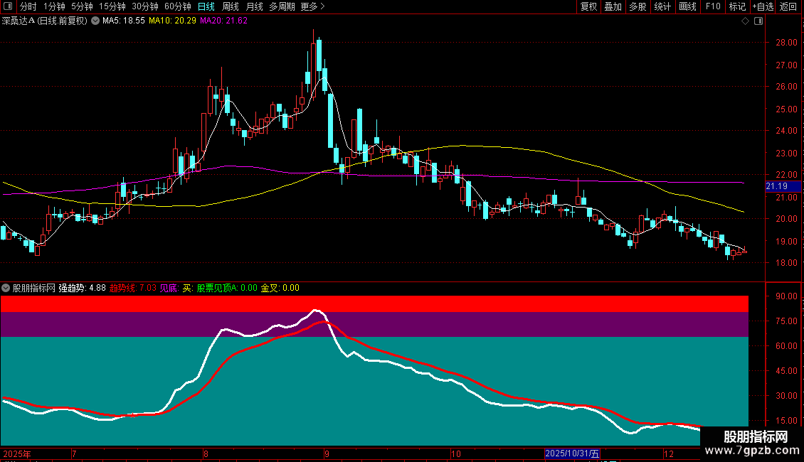金叉:IF(CROSS(强趋势,趋势线)&&趋势线< 60,趋势线,0),NODRAW,COLORYELLOW;