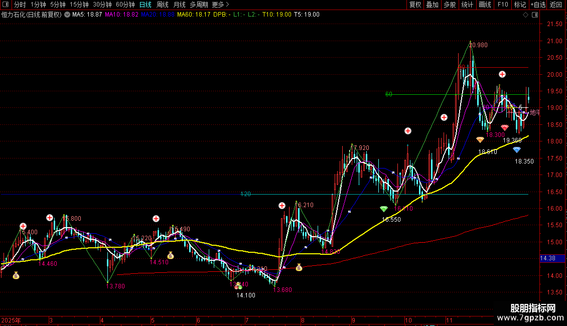 当满足条件到最后交易的周期=N60时,在T60位置书写文字,COLOR00BB00