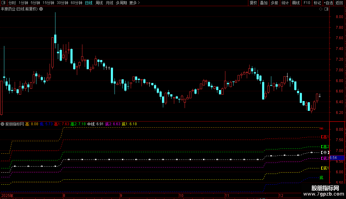 输出中线:高-(高-低)*0.5,DOTLINE,画白色