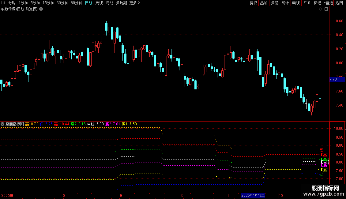DRAWTEXT(CURRBARSCOUNT=1,中线,'【中】'),COLORWHITE;