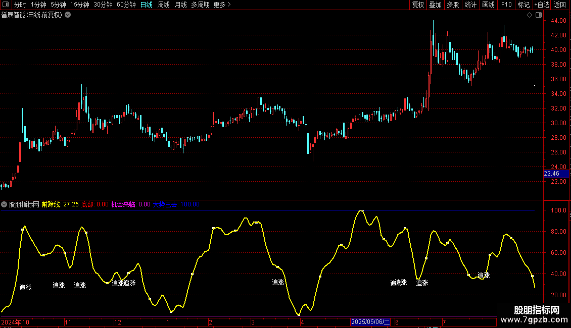 DRAWTEXT(CROSS(黑马线,A5)AND 前蹄线<80,黑马线,'追涨');