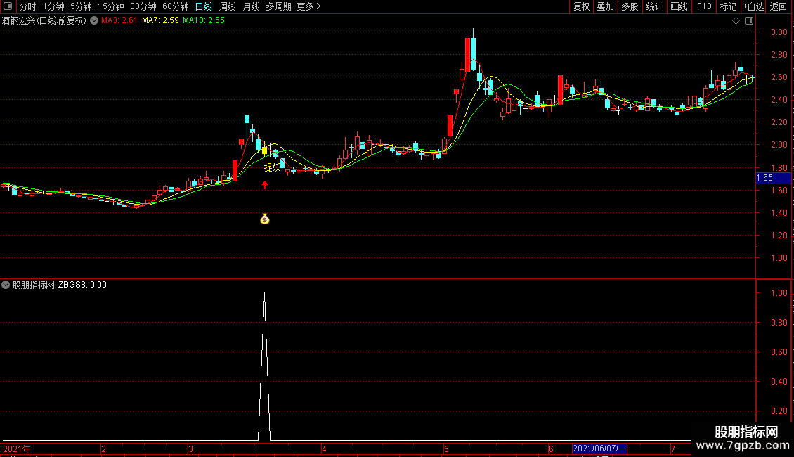 三速均线包括三日七日十日线,多头排列时自动加粗,趋势强度直观可见。