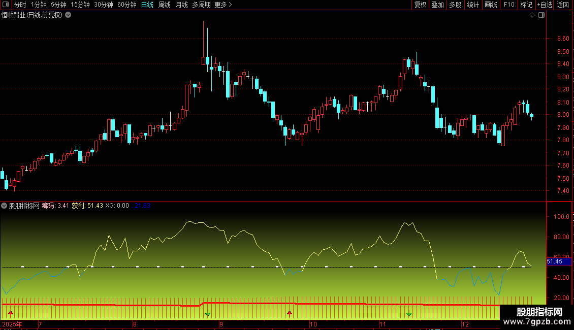 指标主要结合筹码分布、价格位置、均线系统和量价关系,用于判断市场强弱与潜在买卖点。通过分析成本集中度与获利盘比例,识别主力控盘程度;同时利用多周期均线、支撑压力线及特殊K线形态,辅助捕捉低位反弹或突破机会。当出现黄色柱状标记或“3成仓”提示时,视为阶段性低吸信号,适合轻仓介入;而ZIG转向图标则提示短期趋势拐点,可用于波段操作参考。