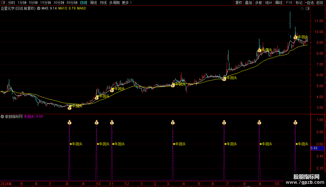 DRAWTEXT(牛回头,0.6,'★牛回头'),COLORYELLOW;
