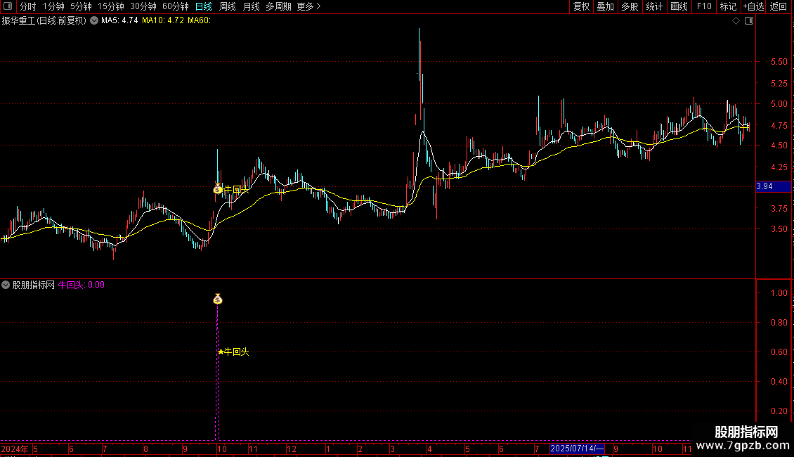 可视化提示清晰直观:主图与副图同步标注牛回头标识,无需紧盯指标,界面直观清晰。指标不含未来函数,信号可靠。