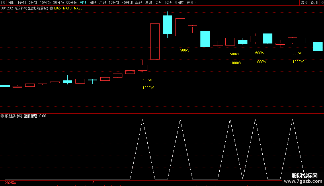 DRAWTEXT(重度预警500W, 位置基准*0.99, '500W'),COLORYELLOW;