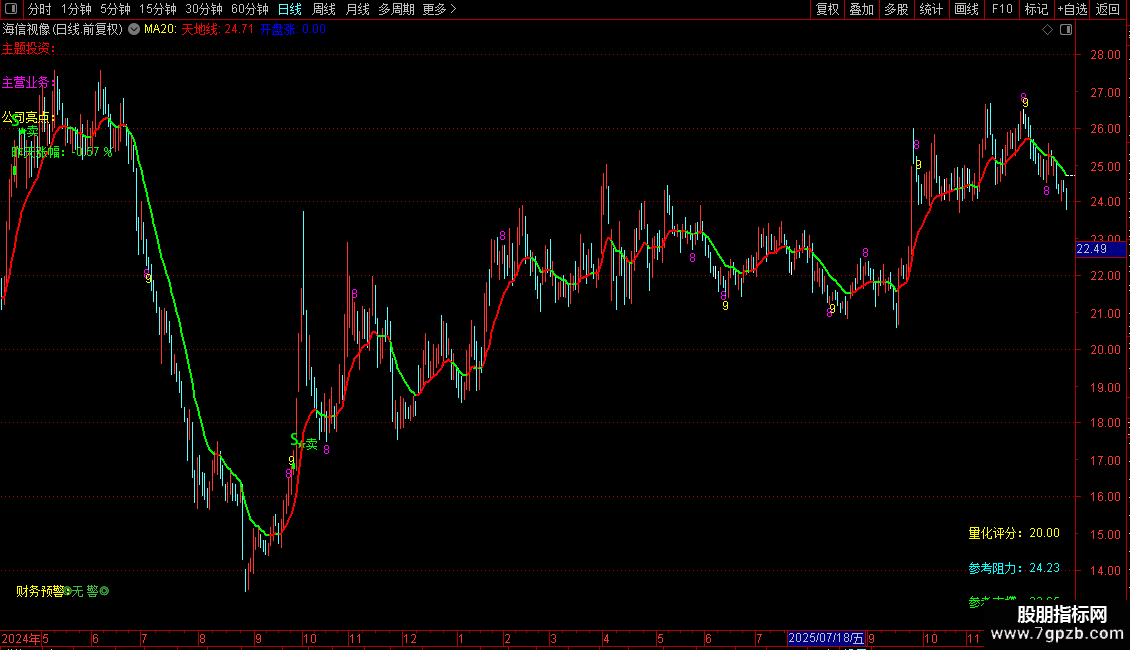 当满足条件A_8ANDREF(A,8)=0时,在最高价*1.02位置书写数字,画洋红色