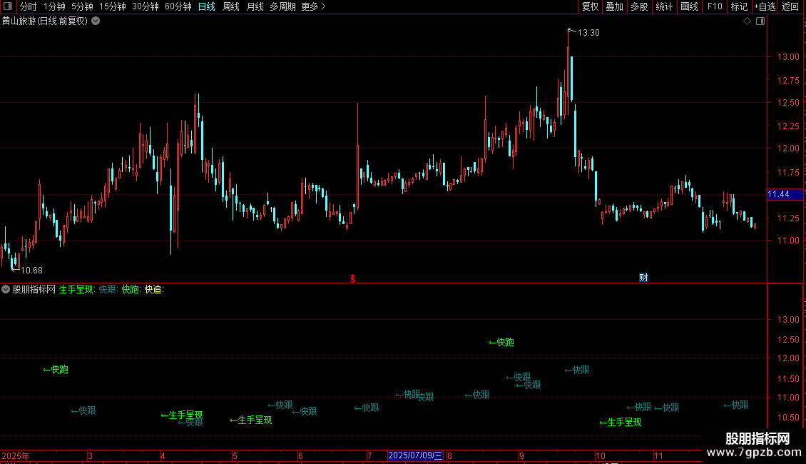 生手呈现:DRAWTEXT(CROSS(J,生手) ,LOW*0.91,'←生手呈现'),COLOR00FF00;