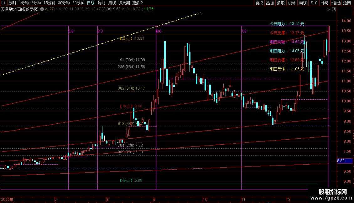 通达信威廉江恩〖角度线组合〗支撑压力划线主图源码
