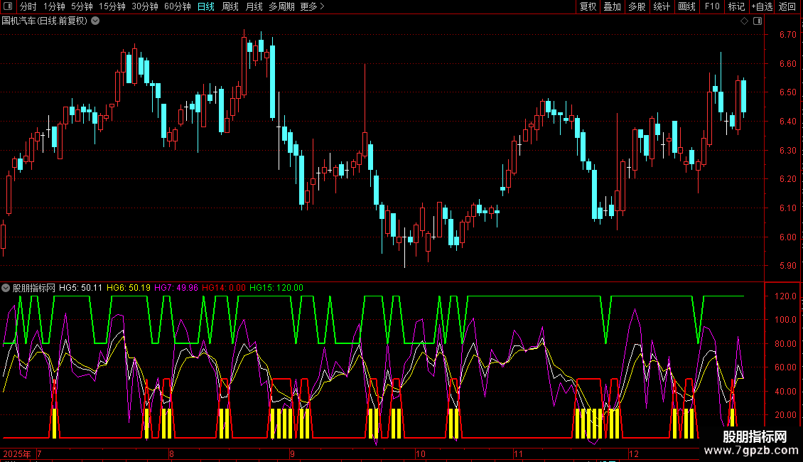 HG4赋值:(收盘价-HG1日内最低价的最低值)/(HG1日内最高价的最高值-HG1日内最低价的最低值)*100