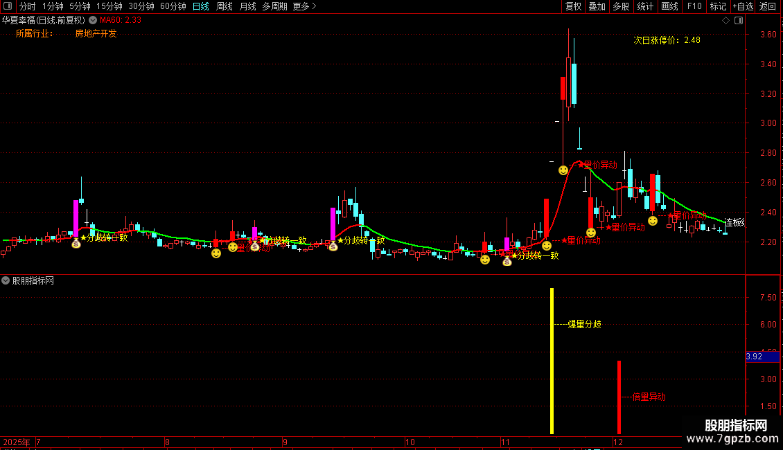 指标主要用于识别潜在强势股的启动信号,结合不同股票的涨跌停规则动态计算次日涨停价,并通过价格、成交量与均线系统判断市场情绪和资金动向。当股价放量上涨、收阳线且突破关键均线压力时,视为“分歧转一致”的买入机会;若仅出现明显放量阳线但未满足更强条件,则标记为“量价异动”,提示关注。策略上,投资者可优先关注带★信号的个股,结合行业信息辅助决策。