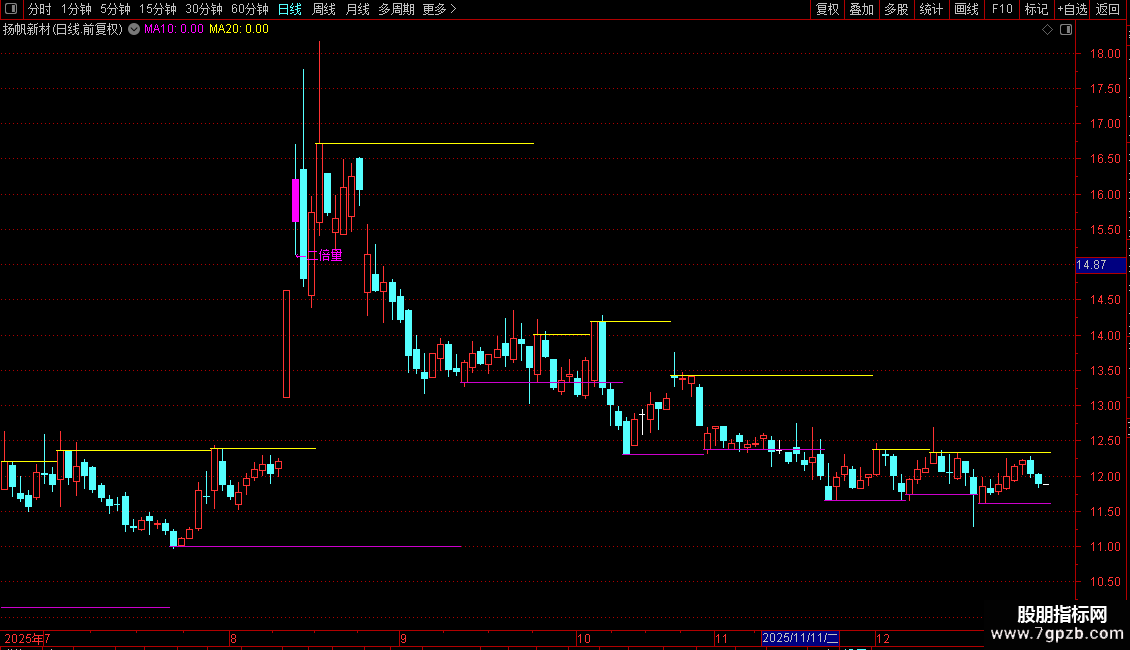 二倍量:REF(ZBGS319=1,1) AND ZBGS319=1,COLORMAGENTA,NODRAW;