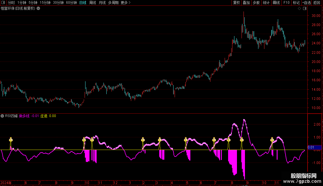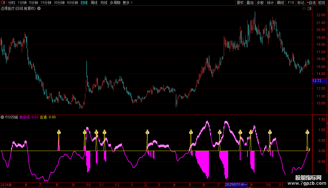 做多线:IF(VAR1>=VAR2,VAR1,VAR2),LINETHICK2,COLORFF00FF;