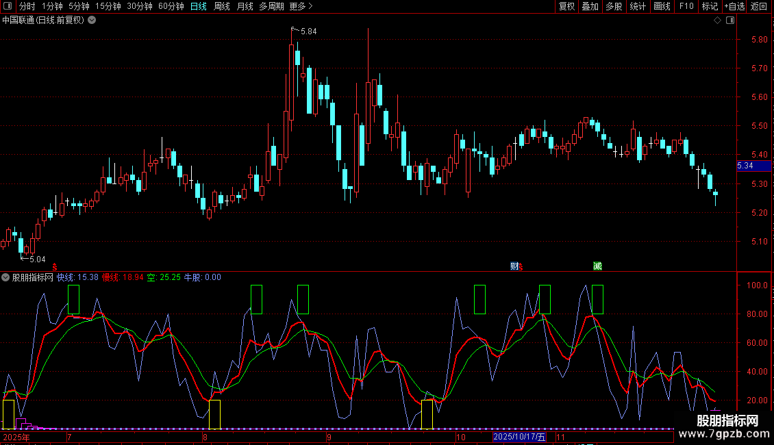 果断买入点和卖点:底部出现黄色柱子且快慢线金叉果断买入,反之顶部出现绿色柱子且快慢线死叉果断抛盘