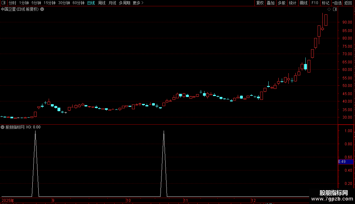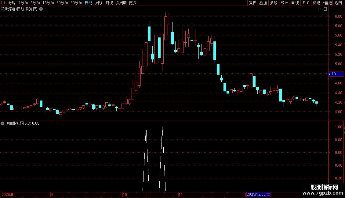 ZC:=50*(IF(MACD>REF(MACD,1) AND REF(MACD,1)>0 AND REF(MACD,2)>REF(MACD,1),0.2,0));